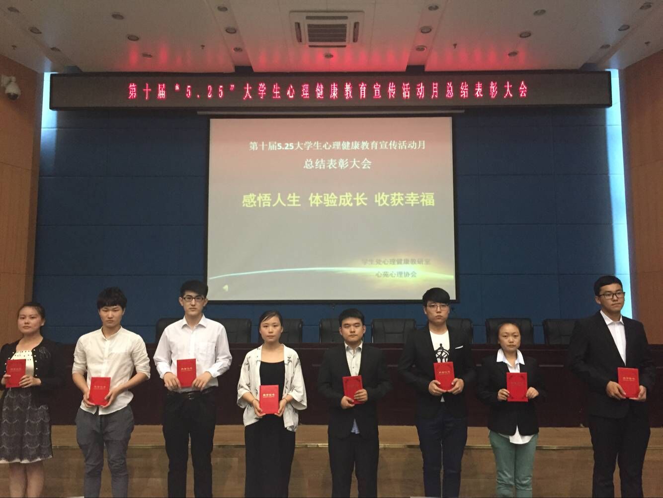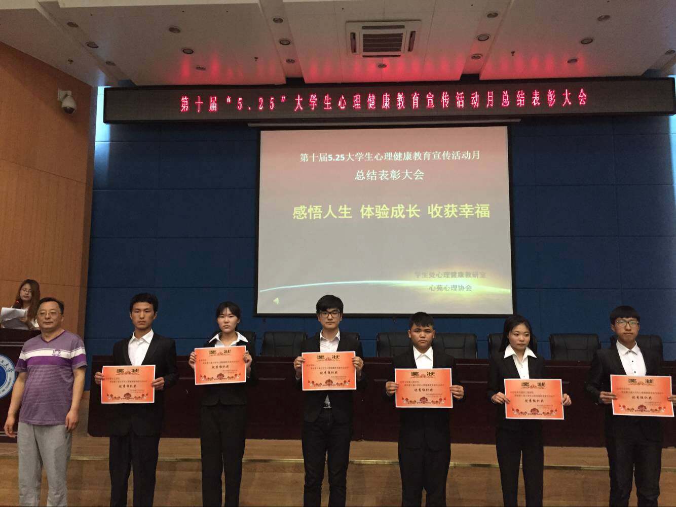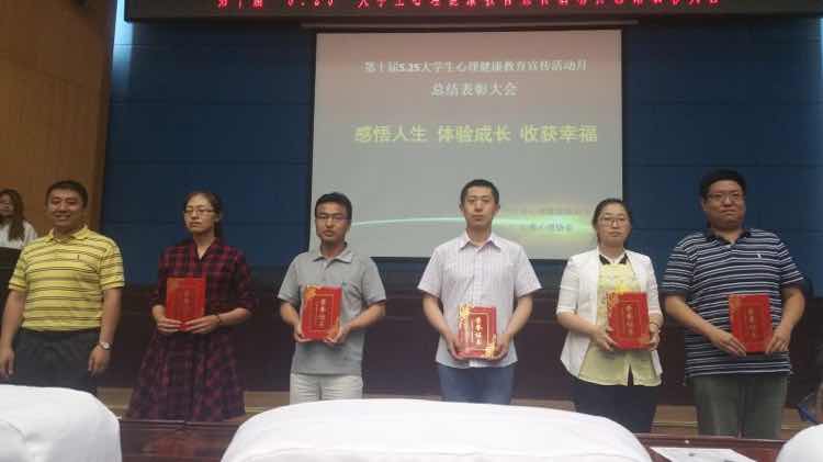 6月6日晚18时,由学生处主办的我校第十届大学生心理健康教育宣传活动月总结表彰大会在西区新主楼五楼报告厅举行。至此,为期一个月的心理健康教育宣传活动圆满结束。学生处处长杨忠学,心理健康教研室全体教师,各学院负责心理健康教育的辅导员老师及各学院班级心理委员代表,心苑心理协会全体成员参加了总结表彰大会。
