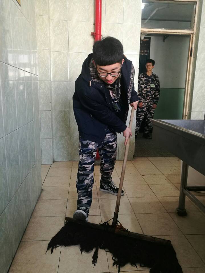 卫生员负责公寓公共区域卫生的清扫、收倒垃圾,擦走廊、楼梯间、洗漱间、清洁卫生间等。通过做卫生员岗位体验,学生真正地体会到了清洁阿姨的辛苦。每个楼层一名卫生员,每天要打扫好多次,每一次的清扫都非常劳累。