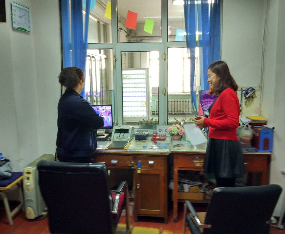 我校具有大学生学历楼长李丹凤介绍公寓中的各个岗位职责及七公寓的情况