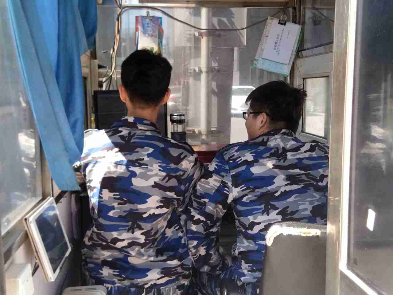 今天虽然阳光充沛,但是微风还是带来了许多凉意。不过我们体验小分队并没有退缩,相反,更加坚定了实践体验意志,他们坚守着自己的保卫岗位,不怕吃苦、勇于坚持的精神值得每个人学习。笔者随机采访了一位体验小分队的成员,问他“今天的工作累么?” 他回答说“累。” “既然很辛苦为什么还要坚持工作?” “保卫的叔叔们每天都是坚守在自己的工作岗位上,日复一日,年复一年,风雨无阻,哪怕在寒冬烈日下他们也不曾退缩,一直坚守着自己的岗位,尽职尽责地保护着我校全体师生的安全,我们今天仅仅是体验保卫这一工作,又有什么理由不继续坚持完成这一天的工作呢?”没错,在这短短的对话里体现的正是我们理工人的精神啊!