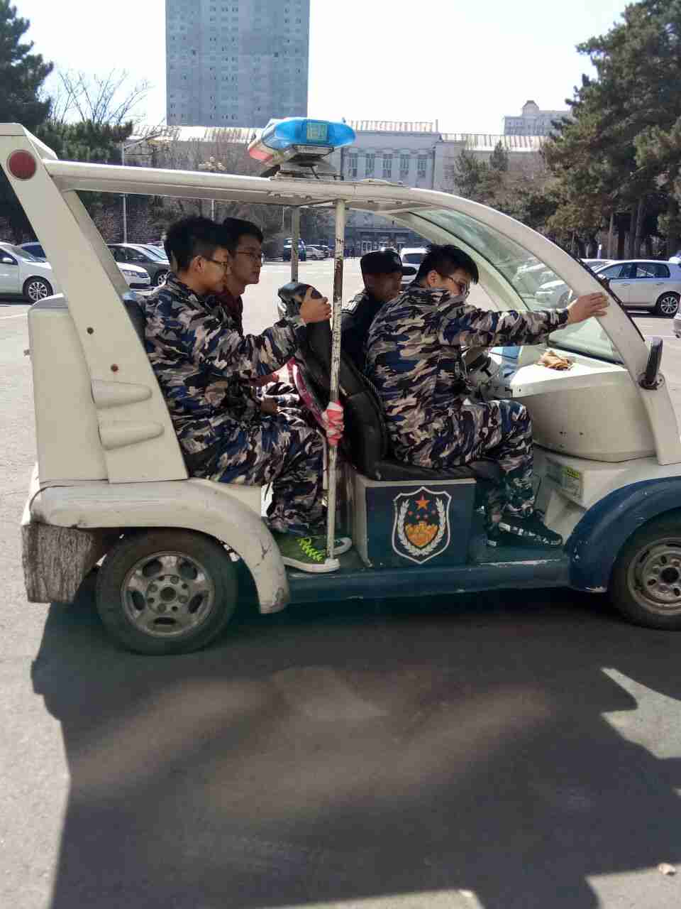 实践体验小分队成员跟着特勤叔叔一起巡逻,保卫工作人员要时刻保持警惕,校园内一旦发生突发事件,他们第一时间采取措施,以免造成不必要的损失。