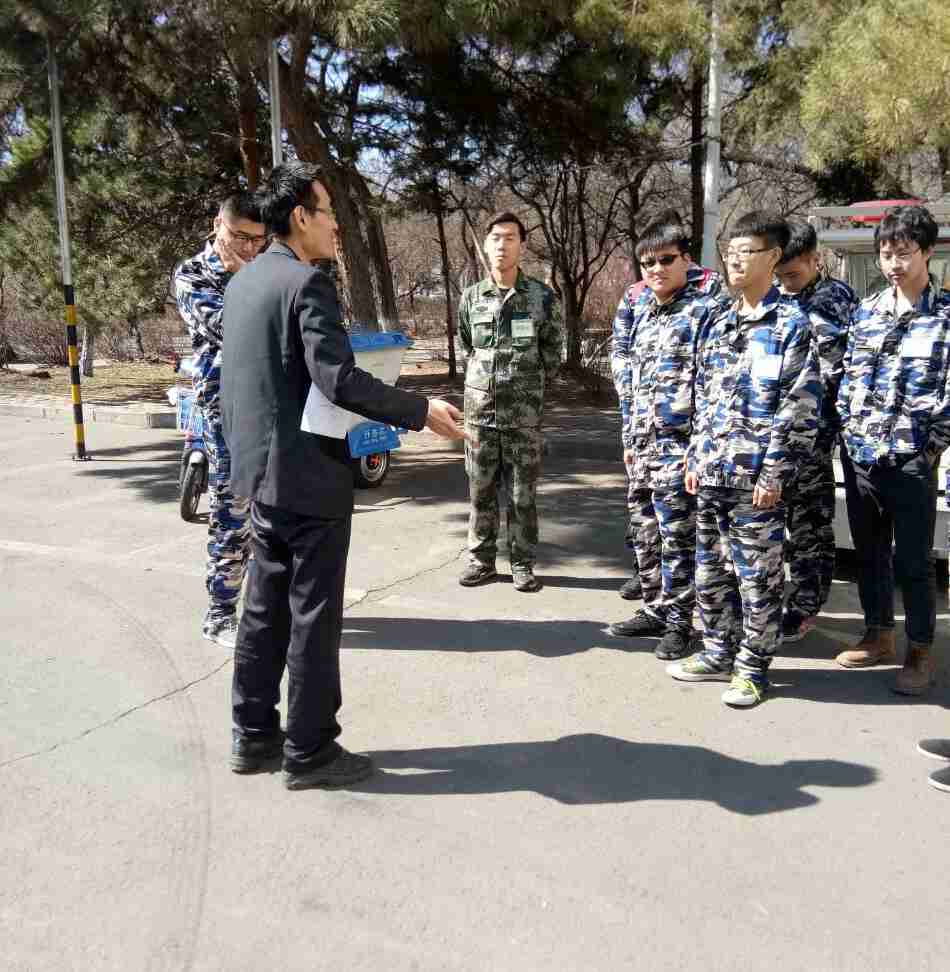 4月8日上午9时,由校勤工助学中心13名学生组成的服务体验小分队再次出发,他们今天实践体验的活动是――我做学校保卫工作人员。实践体验小分队成员在西区2号楼集合后,王经理向小分队成员耐心地讲解了有关校园保卫工作。通过他的讲解,同学们对校园各项安全保卫工作有了初步的了解。我校西区的四个大门是维护校园安全的第一道防线,在每个大门都有保卫工作人员看守,每天他们还要在校园里进行巡逻,通过他们辛勤的工作保卫着我们的安全。