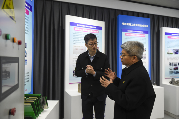 座谈会结束后,熊衍良书记一行在相关部门负责同志的陪同下,参观了学校新能源电机系统及关键材料创新中心、先进电气装备制造与智能运行协同中心、黑龙江省石墨-石墨烯应用技术协同创新中心、哈尔滨理工大学科技成果展厅。