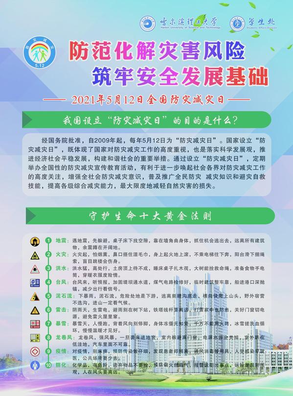 为深入贯彻落实习近平总书记关于防灾、减灾、救灾工作的重要指示精神,切实做好校园防灾、减灾科普宣传教育工作,向广大师生普及防灾减灾安全知识,提高师生自救意识和防范能力,5月12日中午,学校在西校区和南校区食堂门前开展以“防范化解灾害风险,筑牢安全发展基础”为主题的防灾减灾宣传活动,学生处副处长田海燕、学生处张彦坤、张希超参加了活动。