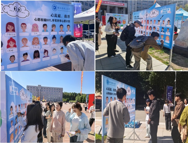 9月8日上午,秋阳初升,哈尔滨理工大学西区校训石广场与南区一号教学楼前广场迎来了一场别开生面的心理健康主题迎新活动。校大学生心理健康教育中心为2025级新生打造了一场充满温度的迎新活动。心理中心专职教师全员驻点,心理协会骨干合力协作,将专业关怀融入迎新的每个细节。