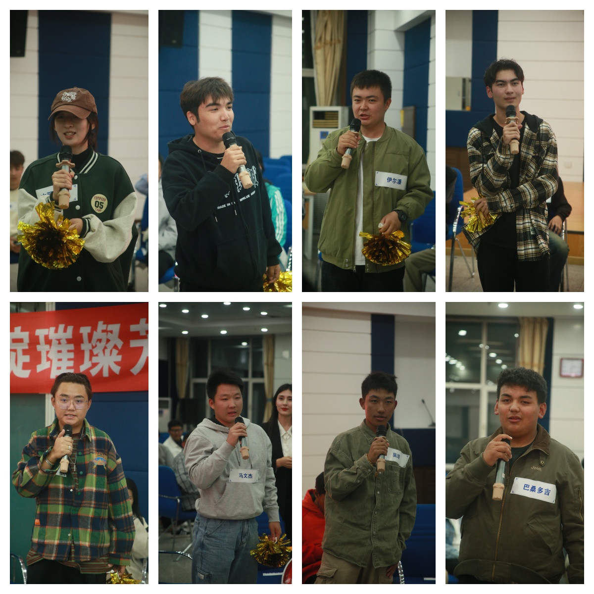 座谈会在温馨而热烈的氛围中拉开序幕,“石榴籽”舞蹈队的阿尔孜古丽·吐尼牙孜为在场的师生带来了精彩的开场舞表演。师生们通过击鼓传花的游戏,依次进行自我介绍,积极分享自己的爱好和特长。工设研24-2班的艾热夏提·阿不都热合曼作为在校生代表发言,他对学弟学妹们的到来表示欢迎,并从自身学习、生活、交友等方面,分享大学期间的经验与体会;人资24-1班的格桑热布旦代表2024级新生代表,并带领全体藏族新生为老师们献上一首藏族歌曲《烛光》,他表示初入大学后,在学习、生活等方面感受到老师们无微不至的关怀,要抓住机遇、学好本领,谱写属于自己的青春篇章。