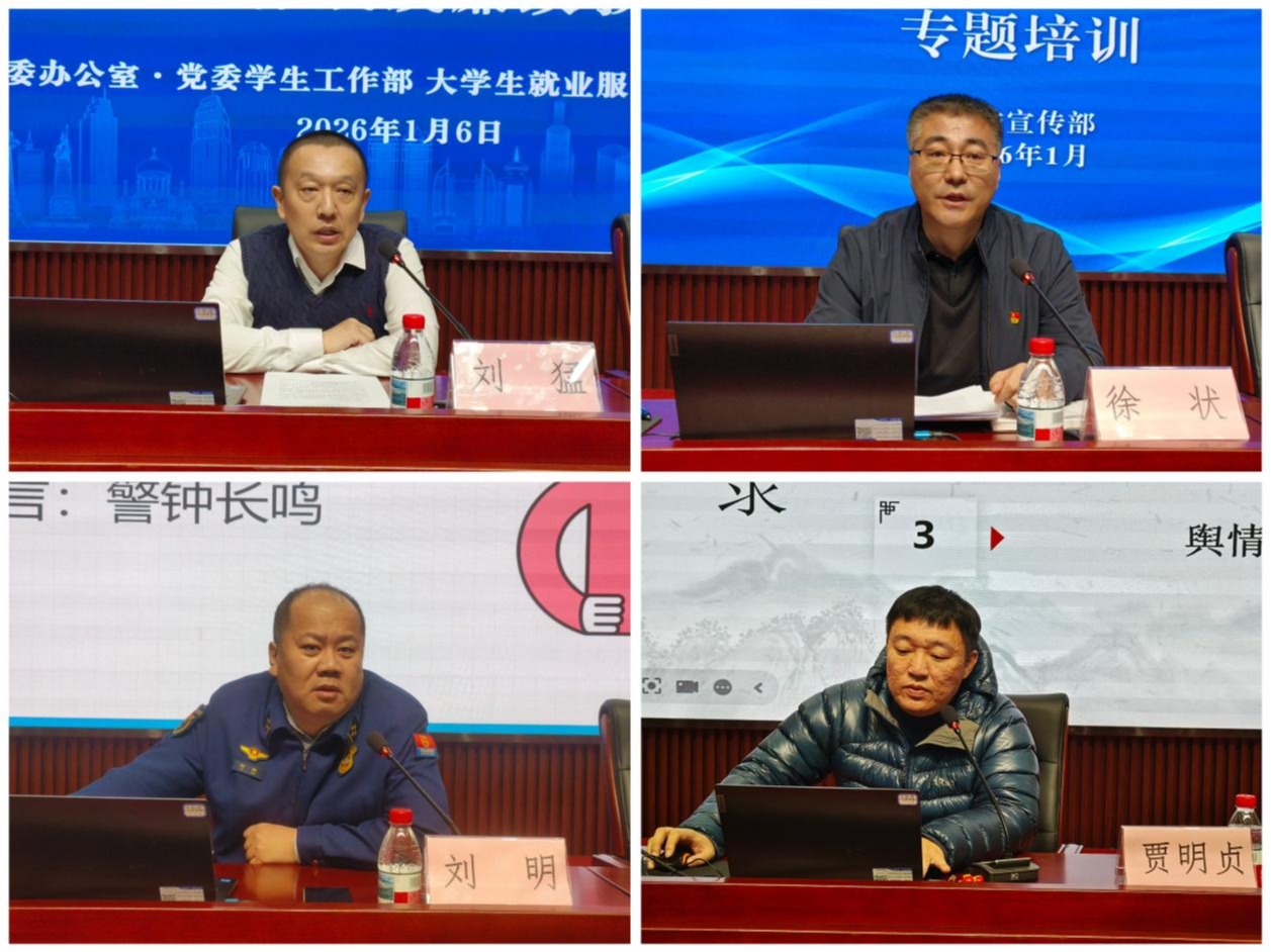 党委宣传部副部长徐状围绕“新闻宣传、舆情处置”作专题培训,结合高校学生工作的特点与实例,系统阐述了新闻宣传的基本原则、信息发布的规范流程以及舆情应对的策略方法,强调了学工队伍在信息传播、价值引导和校园稳定中的关键作用,切实提升了与会人员在公共沟通与舆情响应方面的专业能力。