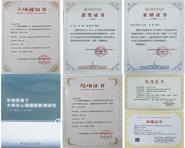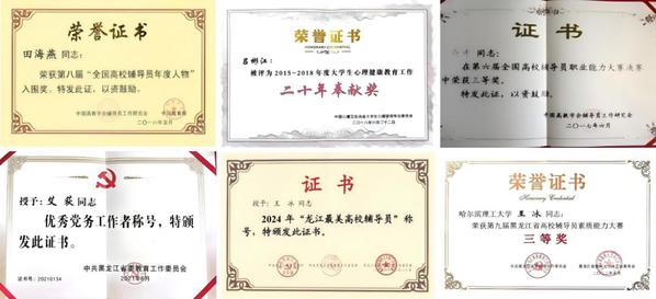 (三)竞赛获奖:工作室成员在辅导员素质能力大赛龙江最美辅导员评选、教育部高校思想政治工作队培训研修中心工作案例大赛、教育部高校思想政治工作队培训研修中心优秀论文评选等赛事中,获得省级及校级奖项50余项。